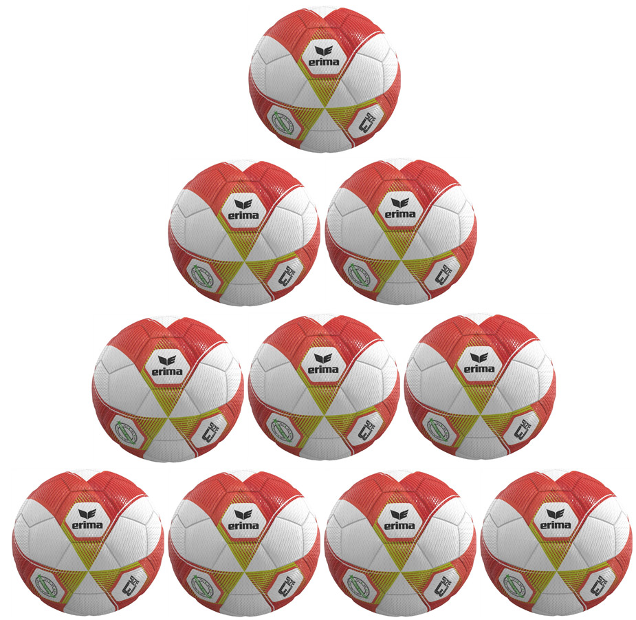 Startseite » Ballpakete » 10er Ballpaket / Ballset Erima Fußball Hybrid Lite 290g fiery-coral/lime Gr. 3