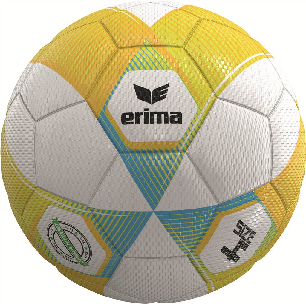 Das 10er Ballpaket des ERIMA Fußball Hybrid Lite 350g in der auffälligen Farbkombination Yellow/Curacao (Größe 4) ist die ideale Lösung für Training, Verein und Schule. Ausgestattet mit der bewährten ERIMA Hybrid Technologie vereinen die Bälle die Vorteile von maschinell genähten und geklebten Panels und überzeugen dadurch mit hoher Strapazierfähigkeit sowie einem gleichmäßigen Spielverhalten.