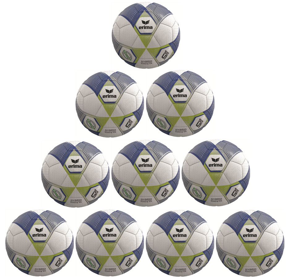 10er Ballpaket / Ballset Erima Fußball Hybrid Training 2.0 metallic blue/silver/lime Gr. 5