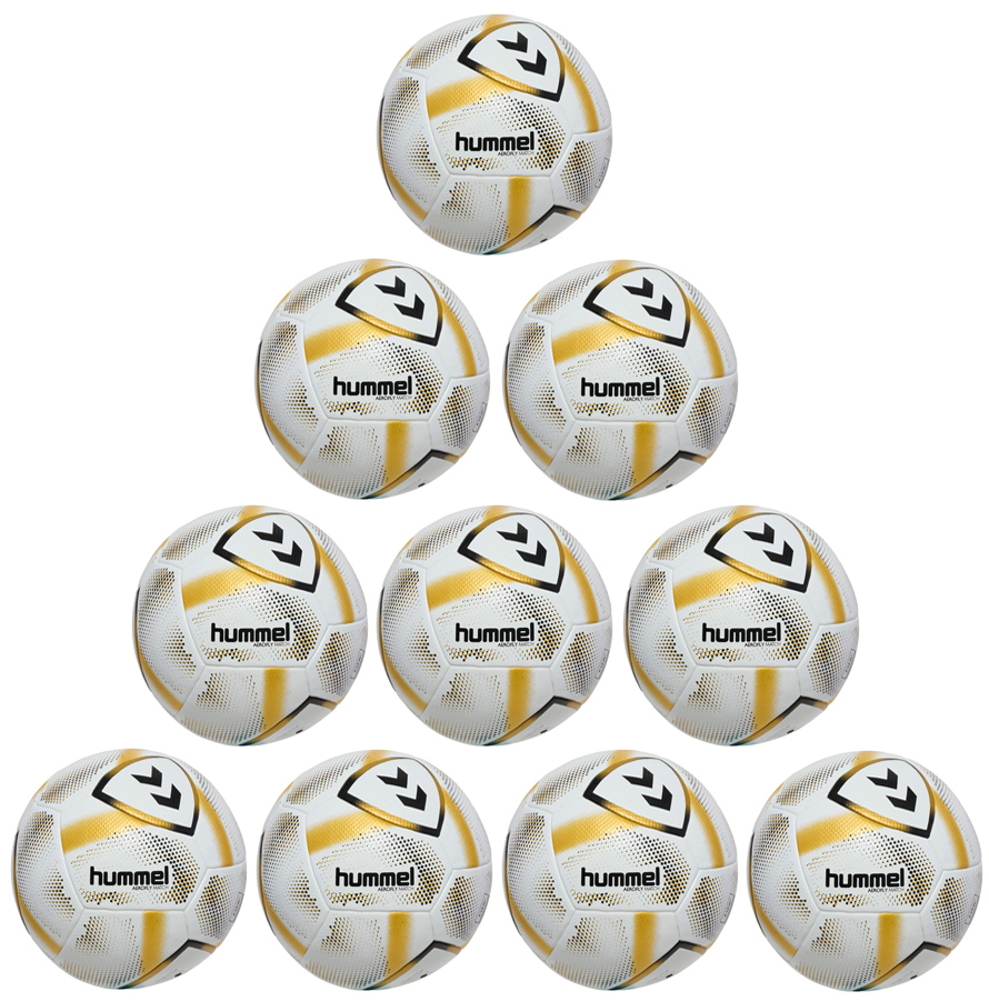 10er Ballpaket / Ballset Hummel Fußball hmlAEROFLY Match weiß/gold/schwarz Gr. 5