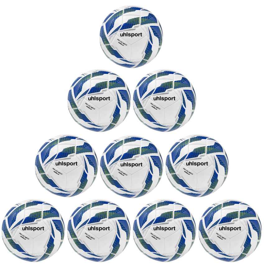 10er Ballpaket / Ballset Uhlsport Fußball 350 Lite Match Addglue weiß/royal/fluo gelb V26 Gr. 4, 5